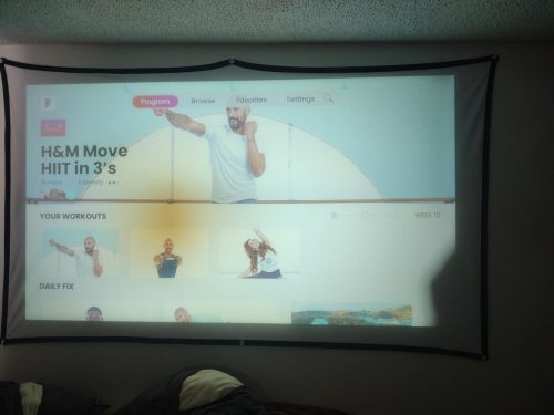 This has great screen quality and I love that it comes with its own bag. The reason I am giving 4 stars is because it is proving difficult to use an iPhone to mirror or cast anything. Right as you play the video and mirror it, it freezes. It even says IOS will be better played while plugged into the projector. What’s the point of having Wi-Fi if you’ll have to leave your phone connected ? I spent more money for that feature and I’m not getting it. We’ll probably still keep it because it was bought for a birthday party a few days away, and again the screen quality is very good. We’ll just have to get a fire stick.