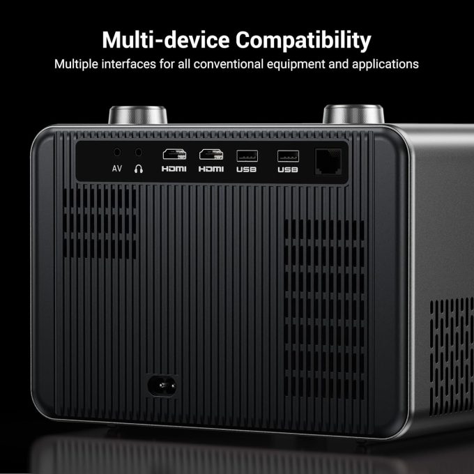 Versatile in its multimedia compatibility, the HAPPRUN H1 projector features HDMI, USBx2, AV, and 3.5mm headphone jack inputs, making it compatible with a wide range of devices including Fire TV Stick, Roku, DVD players, laptops, gaming consoles, smartphones, and more. Whether you’re hosting a garden party, backyard movie night, or outdoor camping adventure, this projector is your ultimate entertainment companion.